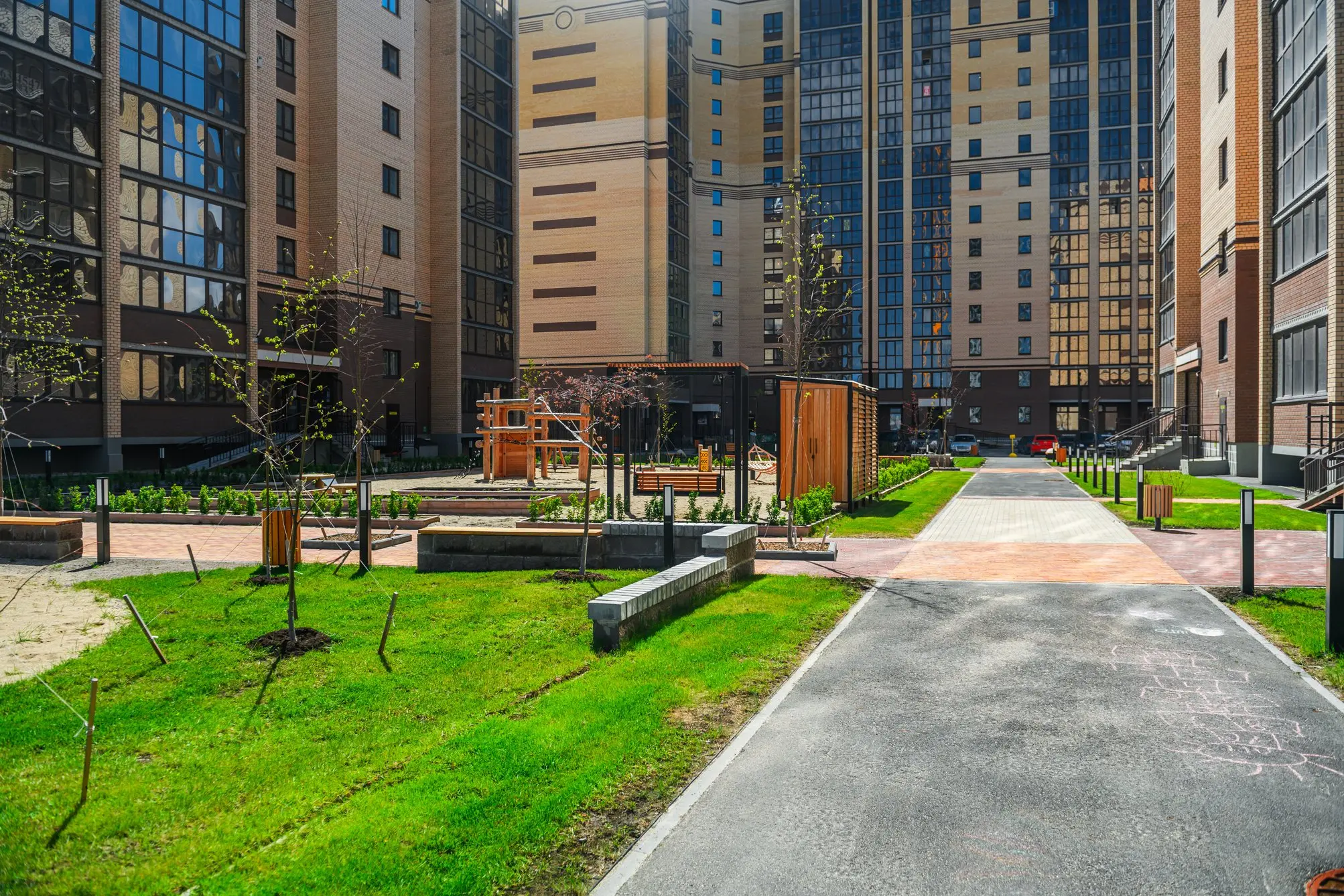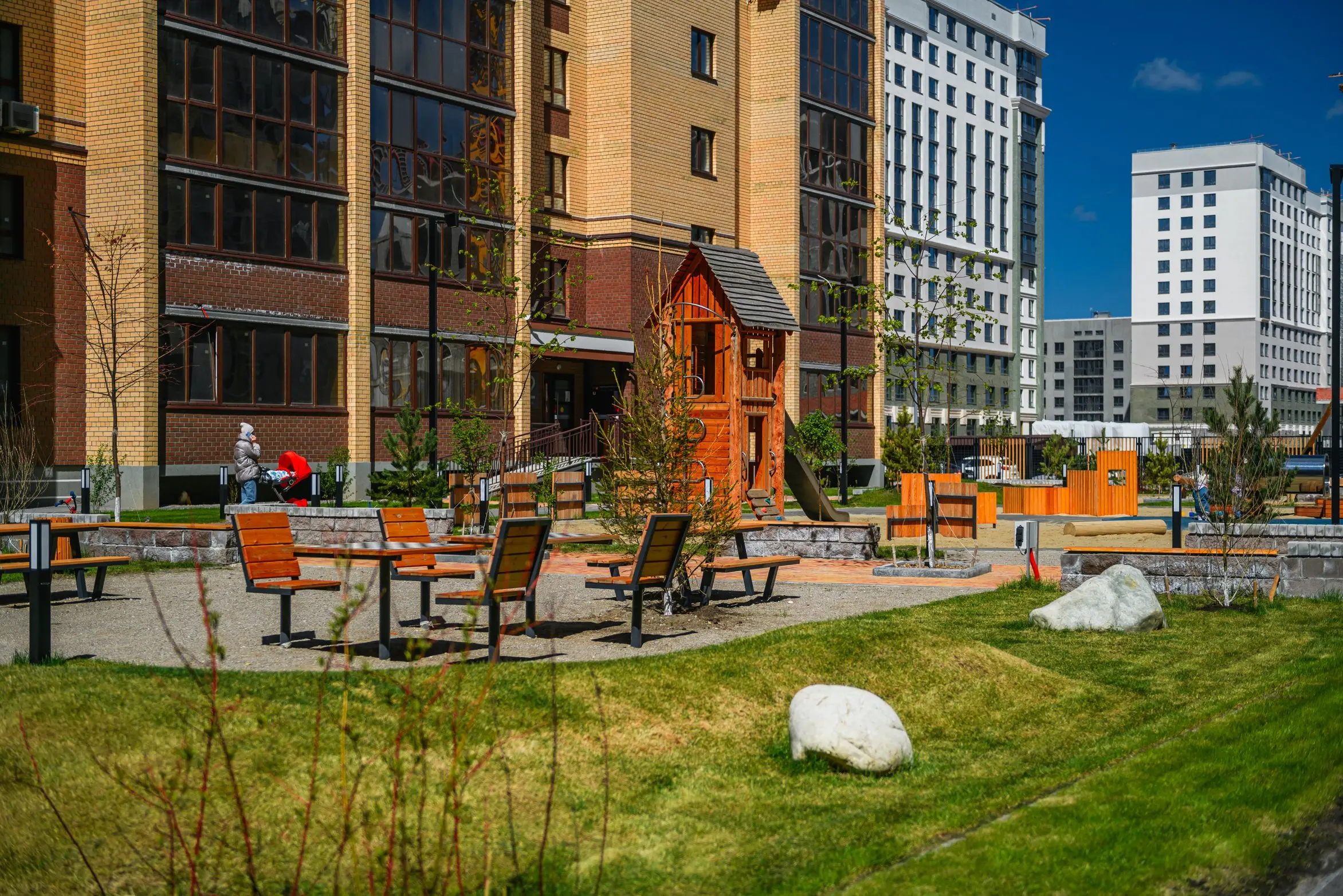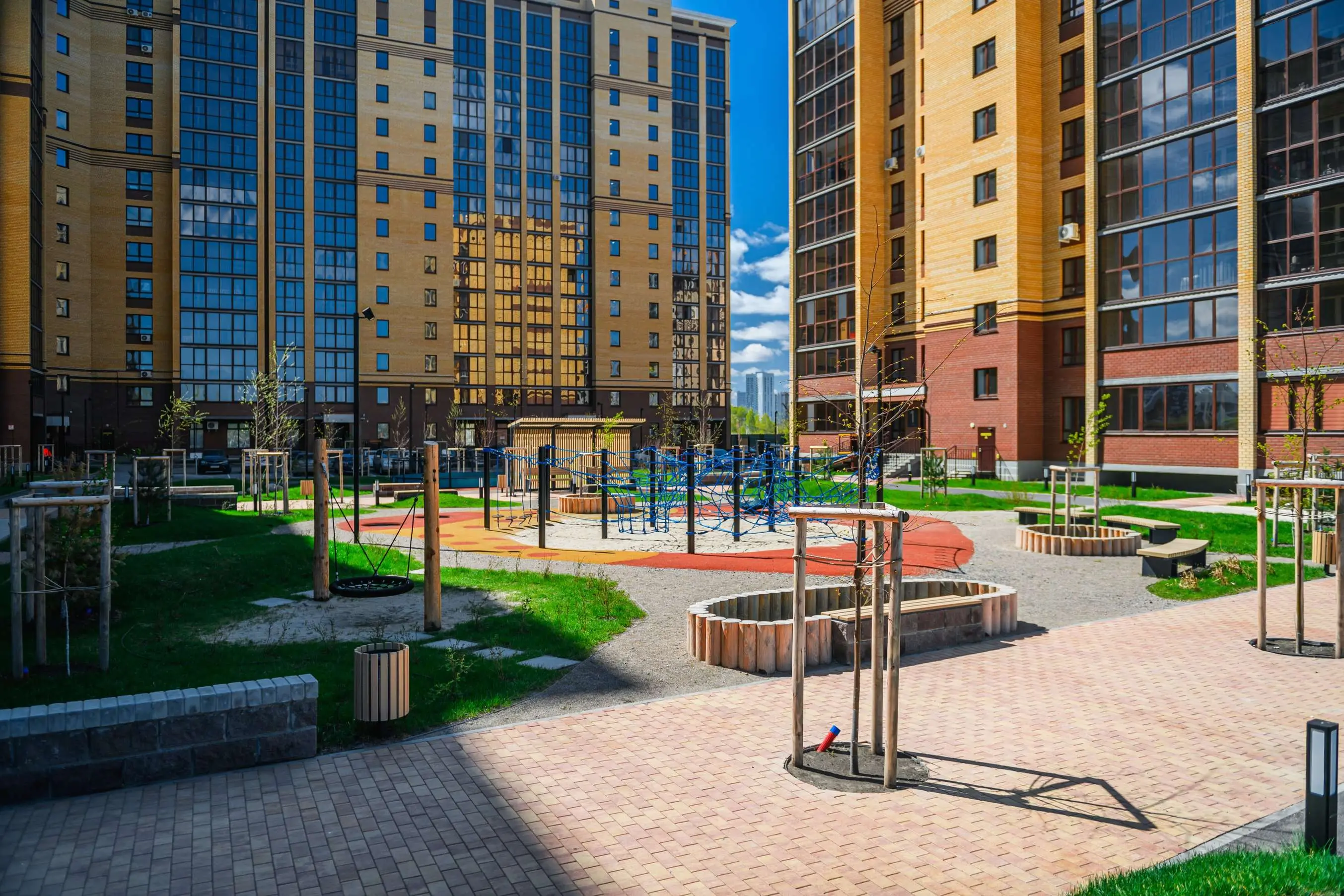 Здесь есть все, о чем вы мечтали: большой прогулочный бульвар, уютные приватные дворики, закрытый паркинг, центральная площадь с фонтаном заветных желаний, магазины на первых этажах и, конечно, квартиры с мастер-спальнями, где вам обеспечены завораживающие виды из окон.