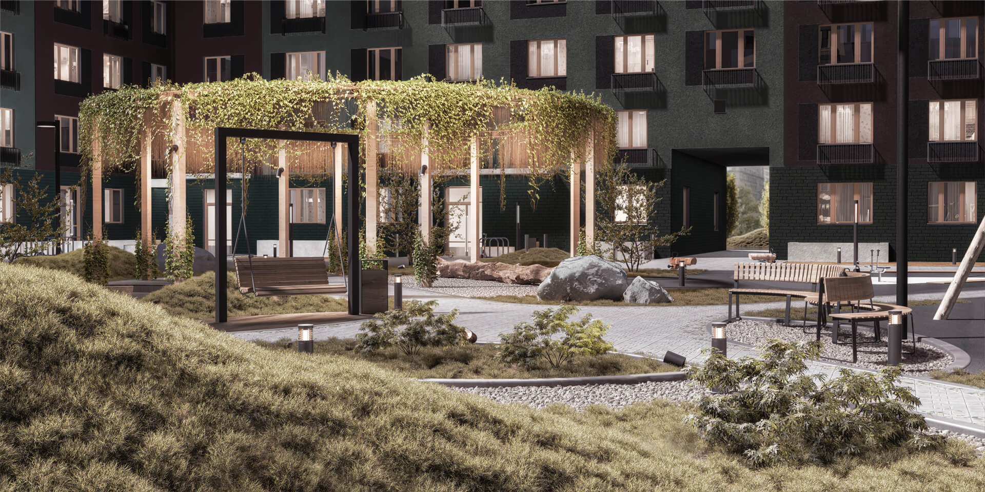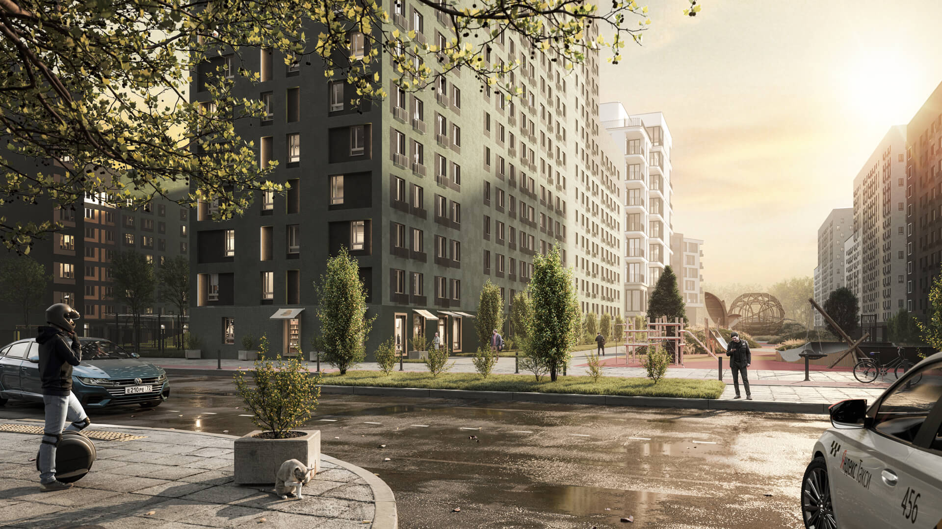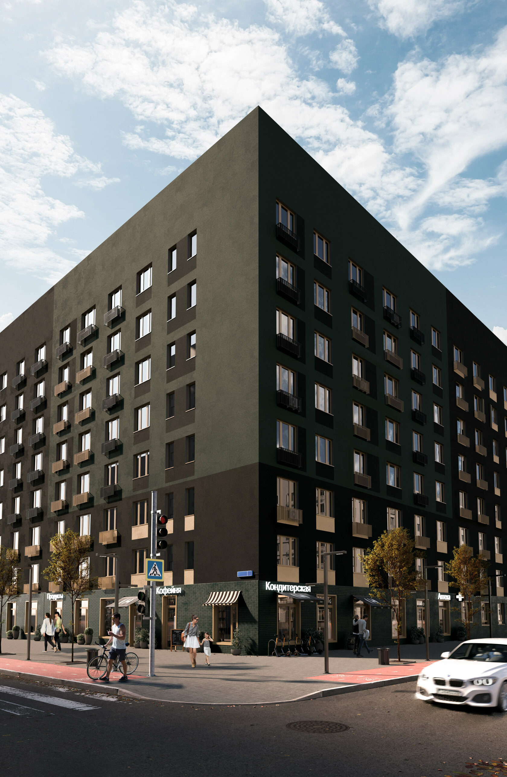 Жилой квартал состоит из нескольких очередей строительства. Здесь будет все для вашего комфорта: комплексное благоустройство со спортивными и детскими площадками, прогулочный бульвар, наземный и подземный паркинг, магазины и кофейни на первом этаже.