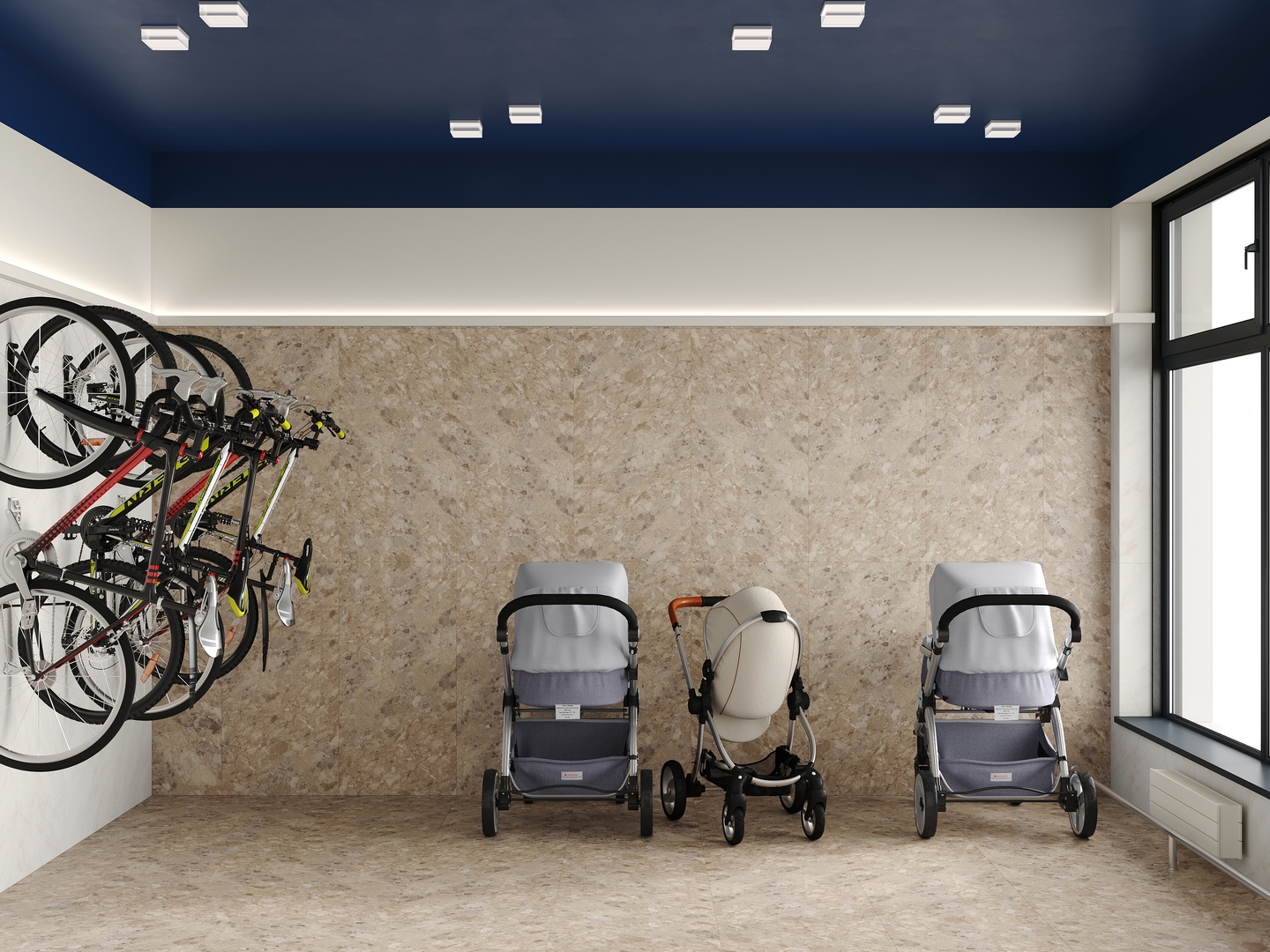 Стилистика подъездов продолжает концепцию Беринга, вдохновлённого Камчаткой: сдержанный,