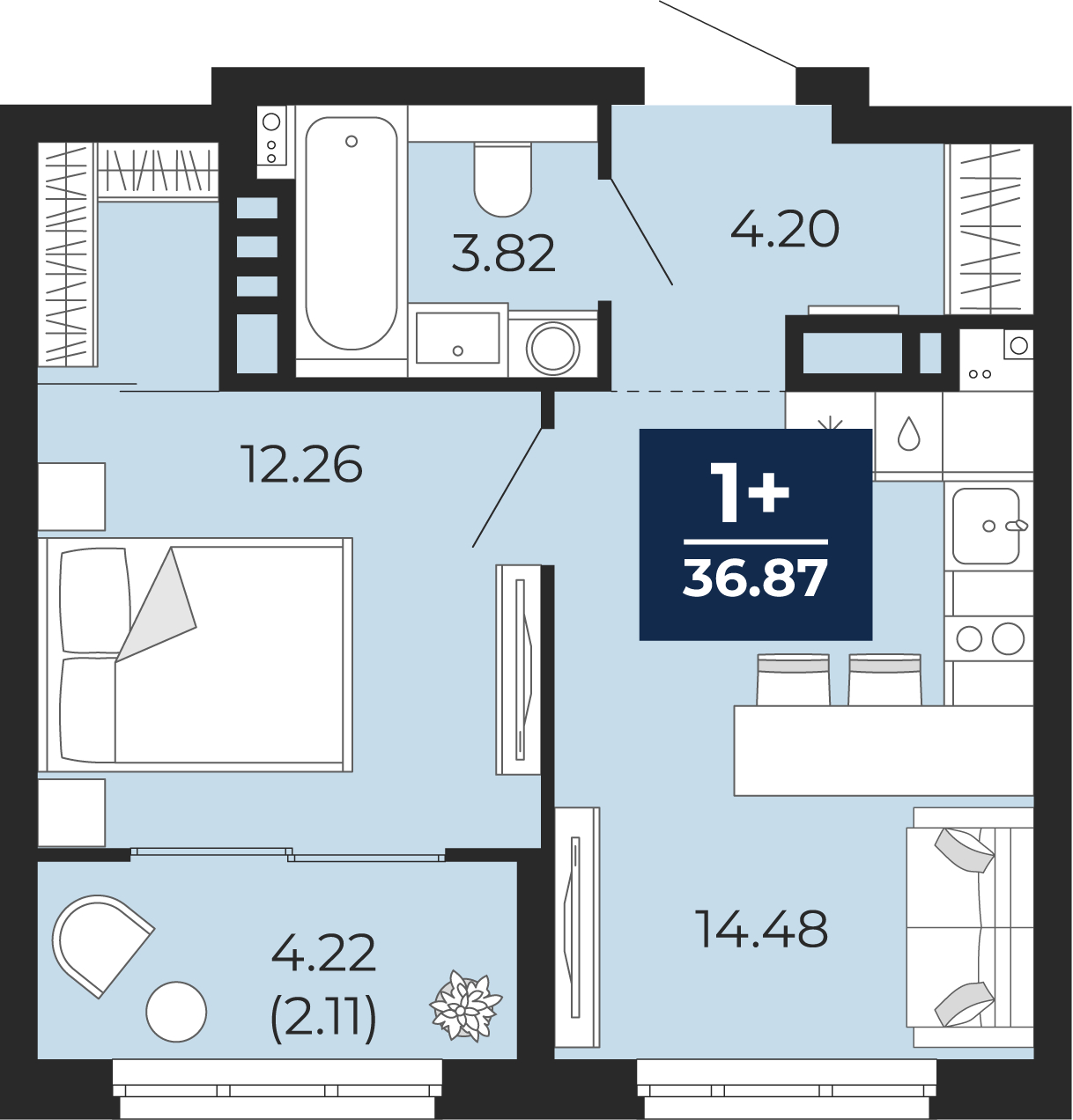 Купить 1к квартиру 34 м² в ЖК "Беринг"